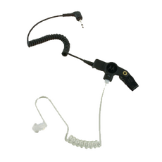 An earphone jack located on the remote speaker microphone allows the user to receive audio more discreetly when using this earpiece. This lightweight earpiece flexes to fit the ear contour for hours of comfortable wear.