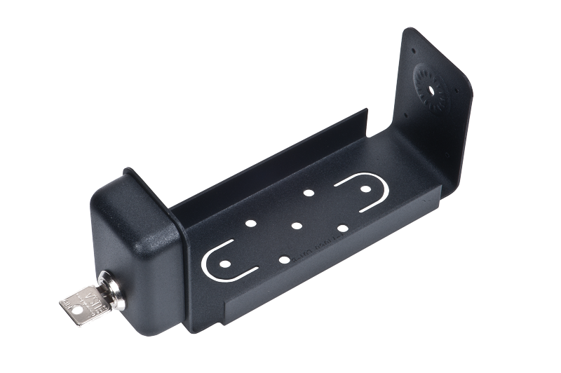 This mounting bracket with key lock helps provide extra protection from theft. Lock and unlock a radio easily from this mounting bracket.