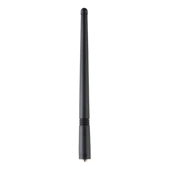 This 7.5-inch flexible whip antenna has a one-piece finish, steel core and spiral wound conductor for optimal radiation characteristics. The VHF antenna works in the 148-161 MHz range.