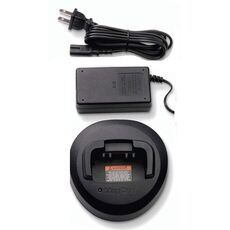 Single-unit rapid charging cradle for the EVX-S24 portable radio. The radio with battery pack fits snuggly in the charging cradle, with an LED to indicate the battery is inserted correctly. The charging cradle must be used with the recommended Micro USB AC Charger (PA-57B)
