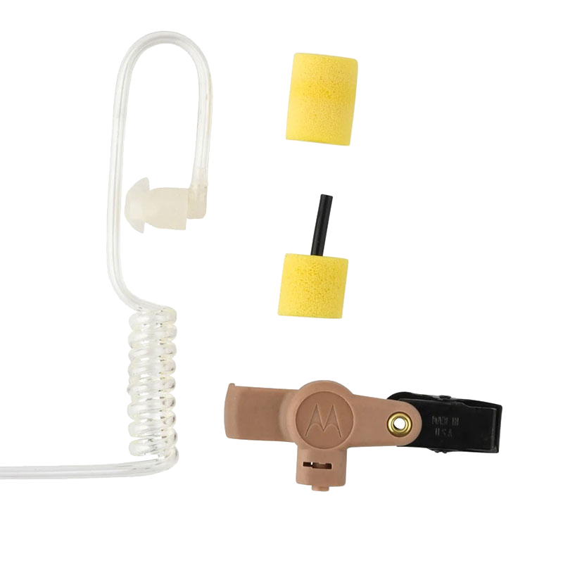 Lightweight, translucent tube attaches to Motorola surveillance accessories to provide flexibility and comfort, which now includes a new quick disconnect adapter. The Quick Disconnect Adapter allows users, especially those in multiple shift operations, to easily remove or alternate acoustic tubes. Clothing clip prevents accessory from being pulled from the ear due to body movement or head rotation. For optimal performance, Extra Loud Earphones are recommended.